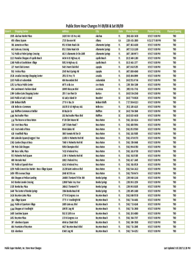 Publix Store Closures Pdf Jacksonville Tourist Attractions